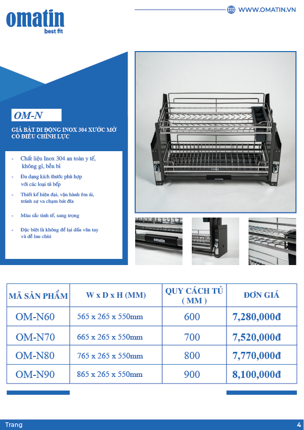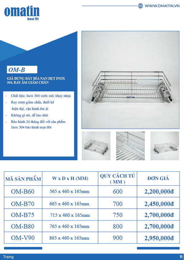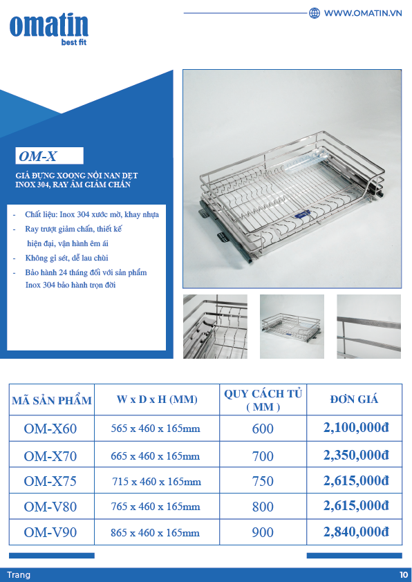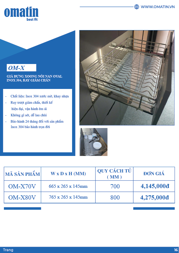 GIÁ ĐỰNG XOONG NỒI-BÁT ĐĨA NAN DẸT INOX 304, RAY ÂM GIẢM CHẤN