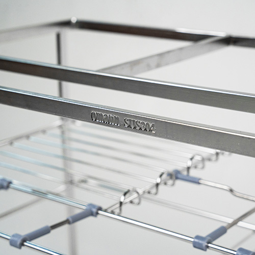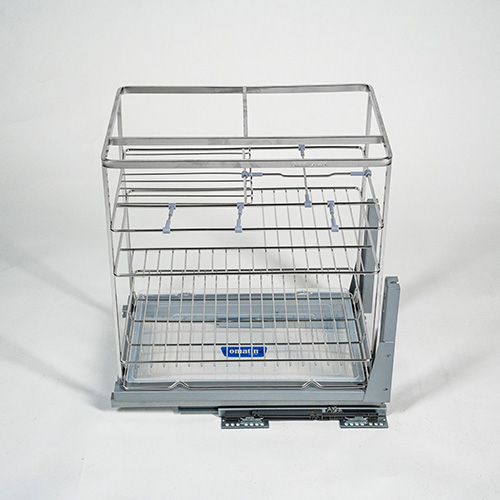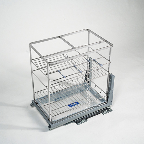 Sản phẩm sử dụng 100% chất liệu inox SUS304 cao cấp. Sản phẩm sử dụng trong diện tích tủ nhỏ kết hợp ray trượt giảm chấn cao cấp . Sản phẩm có kèm theo các hộp đựng đũa, các móc treo linh hoạt